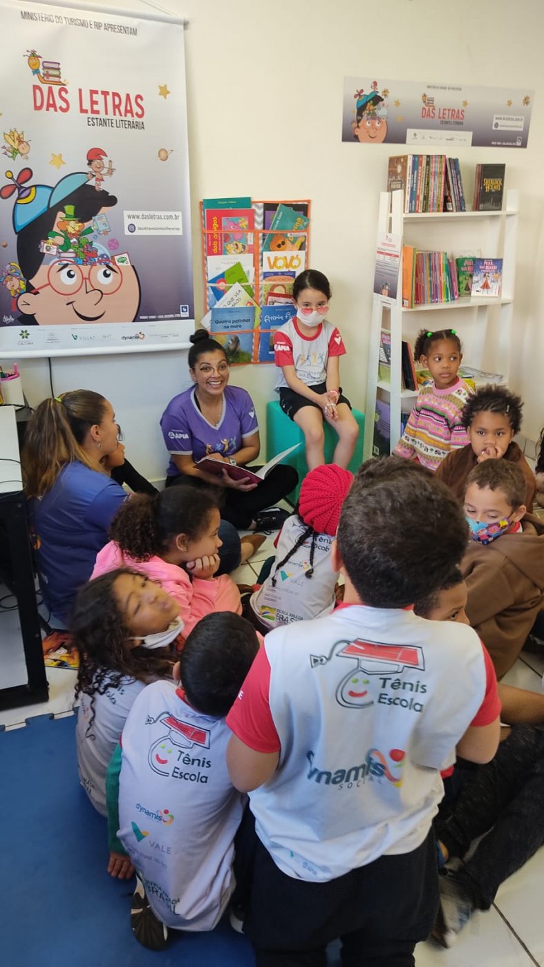 A segunda estante em Nova Lima foi entregue na Dynamis Social - Entidade que nasceu com o aprendizado do jogo de tênis e aos poucos foi crescendo e inserindo novas atividades, como idiomas e artes.