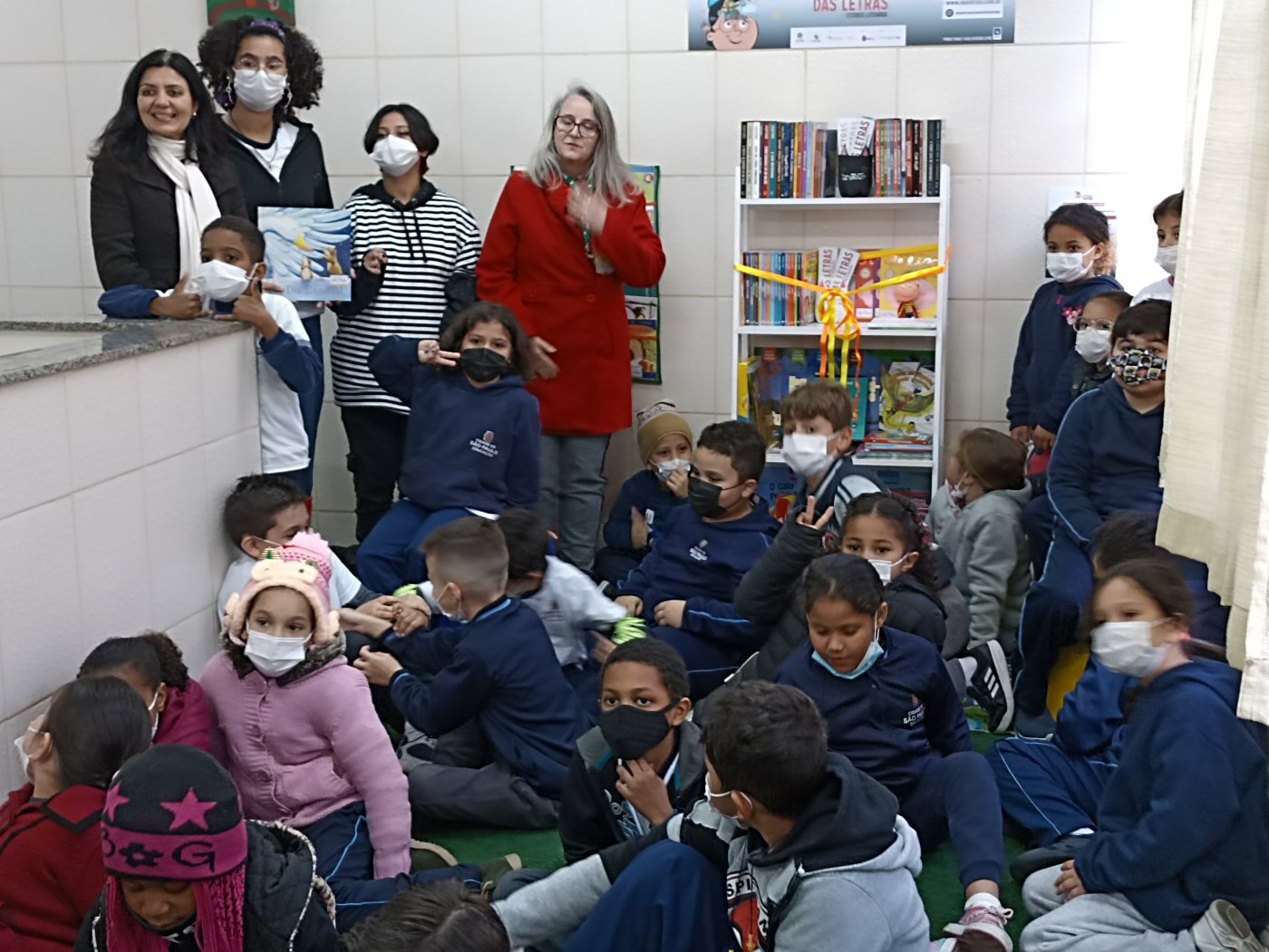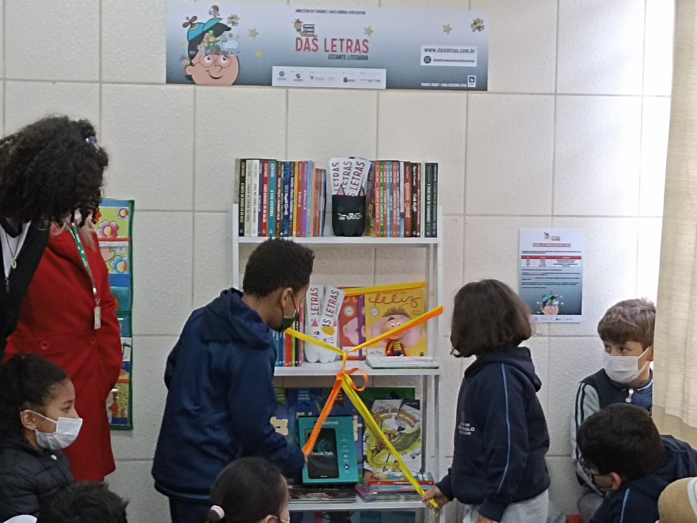 Com a presença das representantes da Viação Santa Brígida, Andrea de Azevedo e Rosangela Gali, no dia 30/08 entregamos mais uma estante literária Das Letras em São Paulo. Dessa vez foi na EMEF Rogê Ferreira no bairro Jabaquara. As alunas do nono ano Anna Lúcia do Nascimento Silva e Ingrid Gomes Baialardi contaram história para as crianças, enquanto o aluno Lucas Salviano de Carvalho Cruz, registrava tudo em fotos.