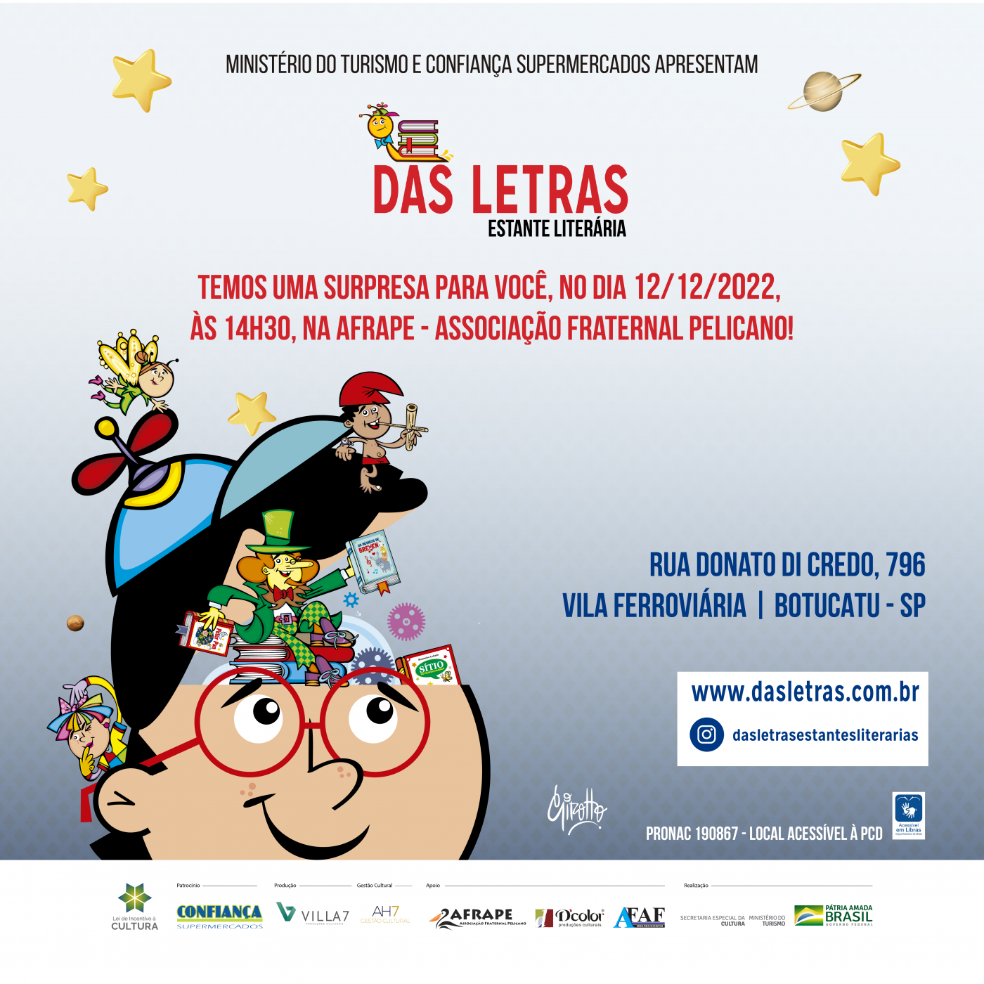 O projeto Das Letras – Estantes Literárias, criado para democratizar o acesso à leitura, chega a Botucatu no dia 12 de dezembro. O objetivo é estimular o hábito de ler, disseminando sua importância no processo de aprendizagem e na construção do conhecimento. Das Letras vai beneficiar a AFRAPE (Associação Fraternal Pelicano) com livros novos (150 exemplares, inclusive atuais, e alguns em braile) e audiobook e tablet. A ação também inclui uma contação de história e seguirá todos os protocolos de segurança vigentes no município e de acessibilidade à PCD (Pessoa com Deficiência).