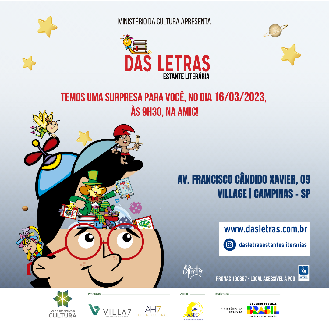 A cidade de Campinas, terá mais três estantes literárias Das Letras, projeto composto por livros novos (300 exemplares e também livros em braile), além de dispor audiobook e tablet. As entregas irão acontecer nos dias 04, 16 e 17 de março em três instituições.