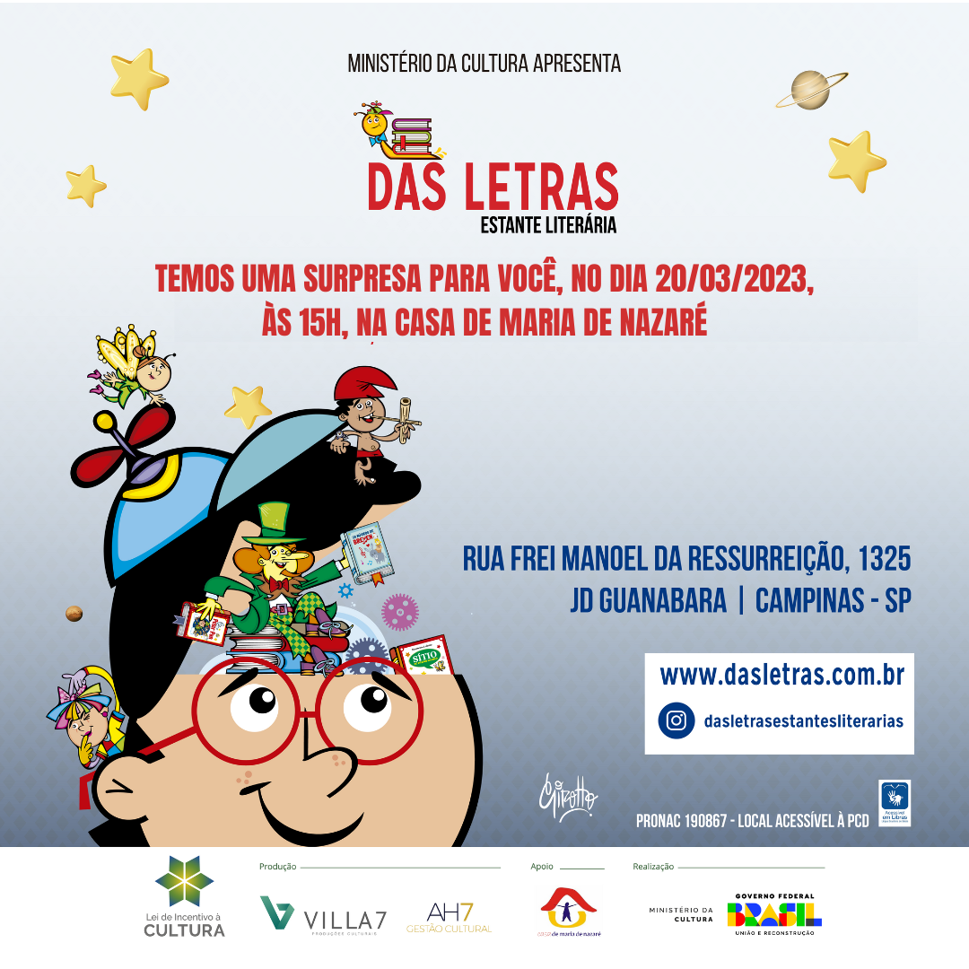 Viabilizado pela Lei de Incentivo à Cultura com realização do Ministério do Turismo, através da Secretaria Especial de Cultura, Das Letras – Estantes Literárias é produzido pela Villa 7 Produções Culturais em parceria com a AH7 Gestão Cultural.
